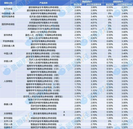 不过,市场的“静水流深”也体现在细节里:新上架产品的“保底承诺”(保证利率)正悄然下调,而往年收益通常更高的进取型账户,今年与稳健型账户的收益差正在缩小,甚至在多款产品中出现了“收益倒挂”,譬如,新华养老、人保寿险等险企的12款产品稳健型账户结算利率高于进取账户。