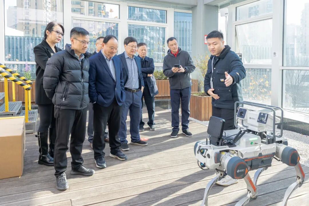 与会企业家一行实地参观了咸亨国际企业展厅与研发中心。在展厅,大家深入了解了公司的发展历程与业务布局;在研发中心,更聚焦于创新成果,近距离观摩了其自主研发的四足机器人测试场景,生动展示了公司的技术实力与前沿探索。与会的企业家表示,咸亨国际所展示的技术成果是其在机器人领域深耕与创新的有力证明,并期望本次会议能成为产业协同的新起点,助力相关合作迈出坚实步伐,推动讨论中的构想转化为实质性合作。